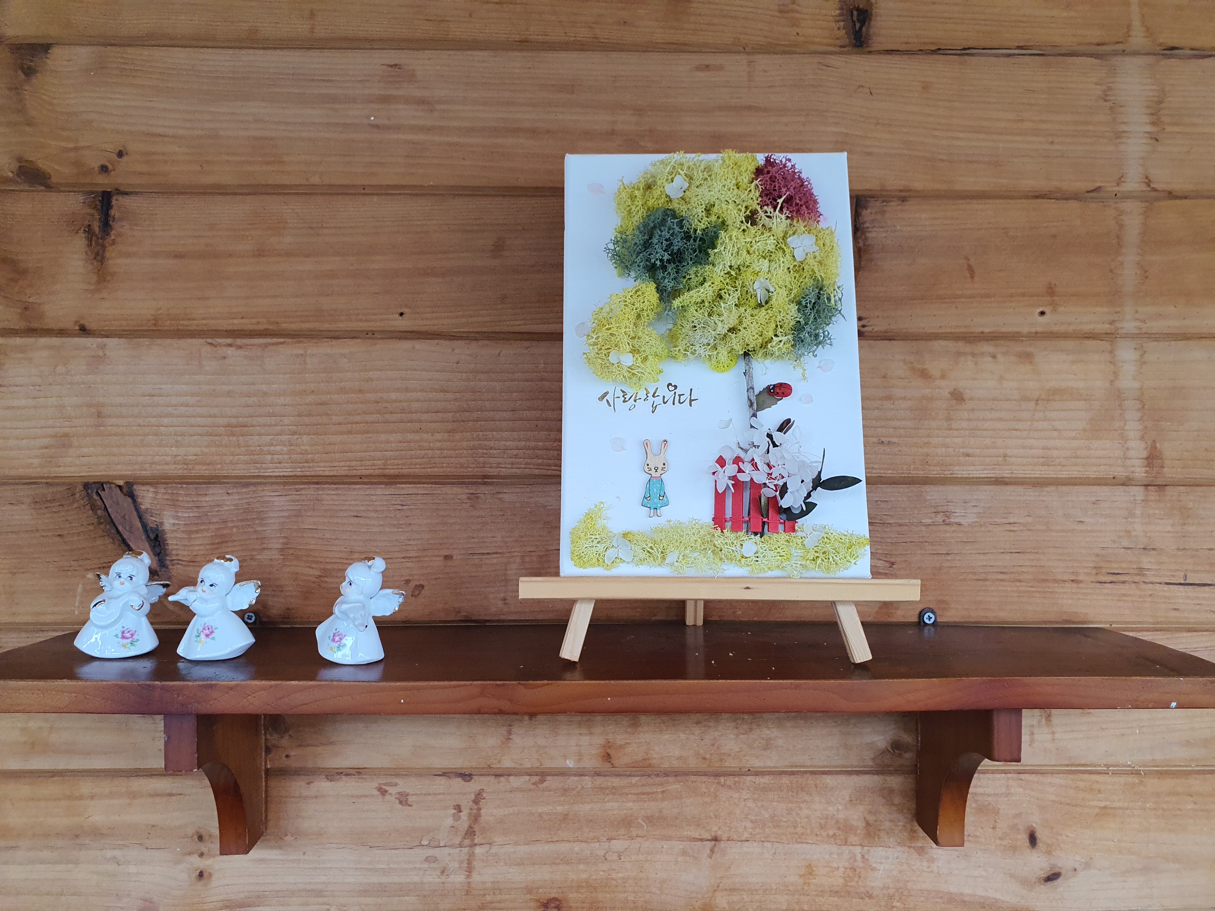 벽에는 아기자기한 소품들로 장식되어 있어요.