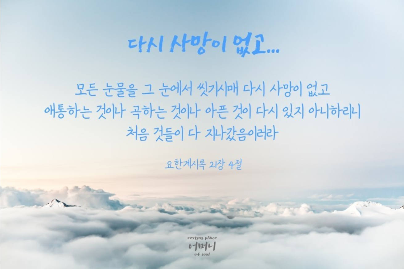 사망이 없는 곳!! 슬픔도 아픔도 없는 곳!! 천국은 이런 곳입니다. 이 곳에서 영생의 약속을 받을 수 있는 절기가 새언약 유월절입니다. 이 귀한 새언약 유월절을 지키는 교회가 지구상에 하나님의 교회뿐이니 누구든지 하나님의 교회로 와야합니다.