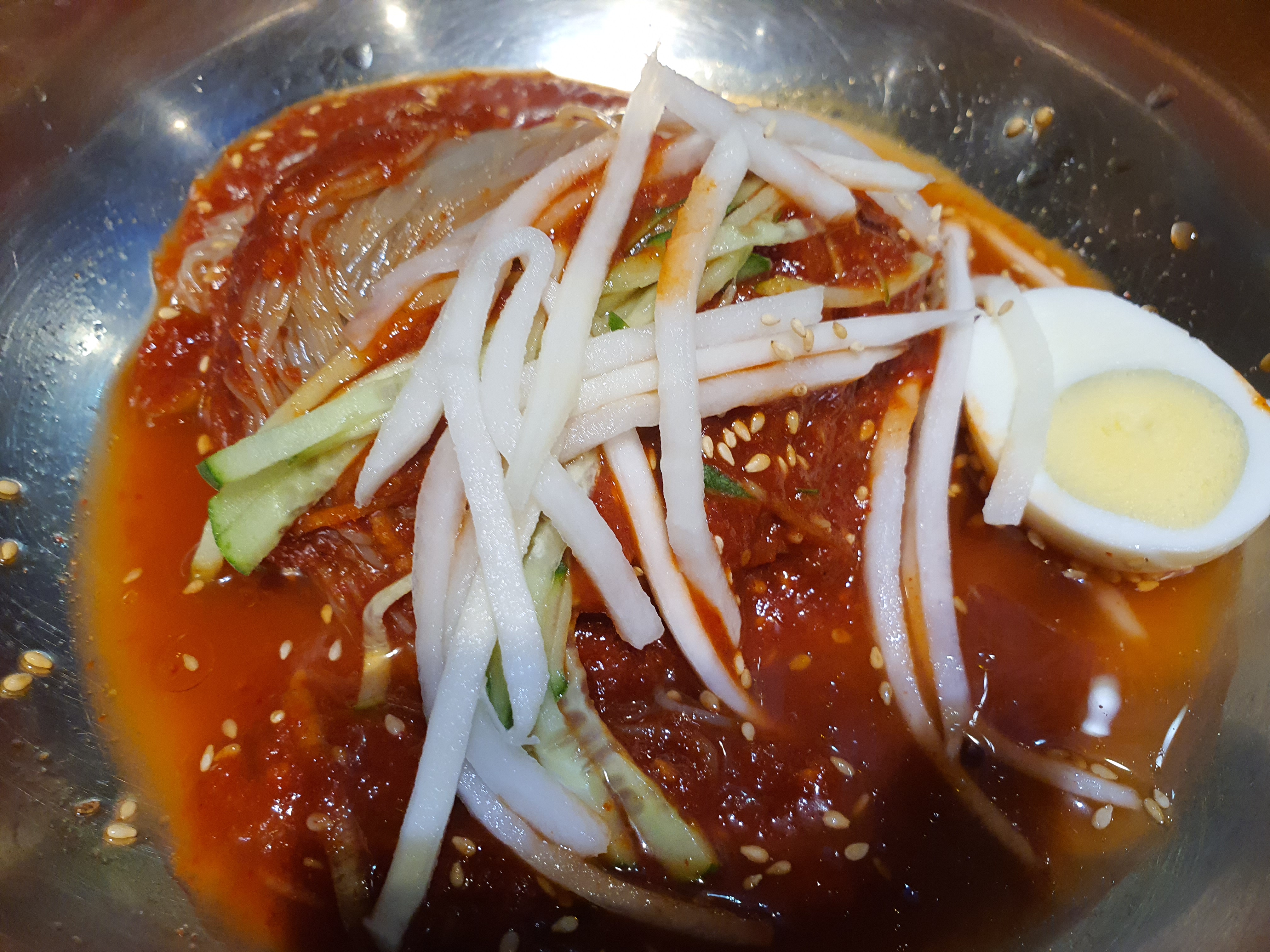 비냉은 많이 매우니 육수 쪼까 넣어서 먹어야 해요.
