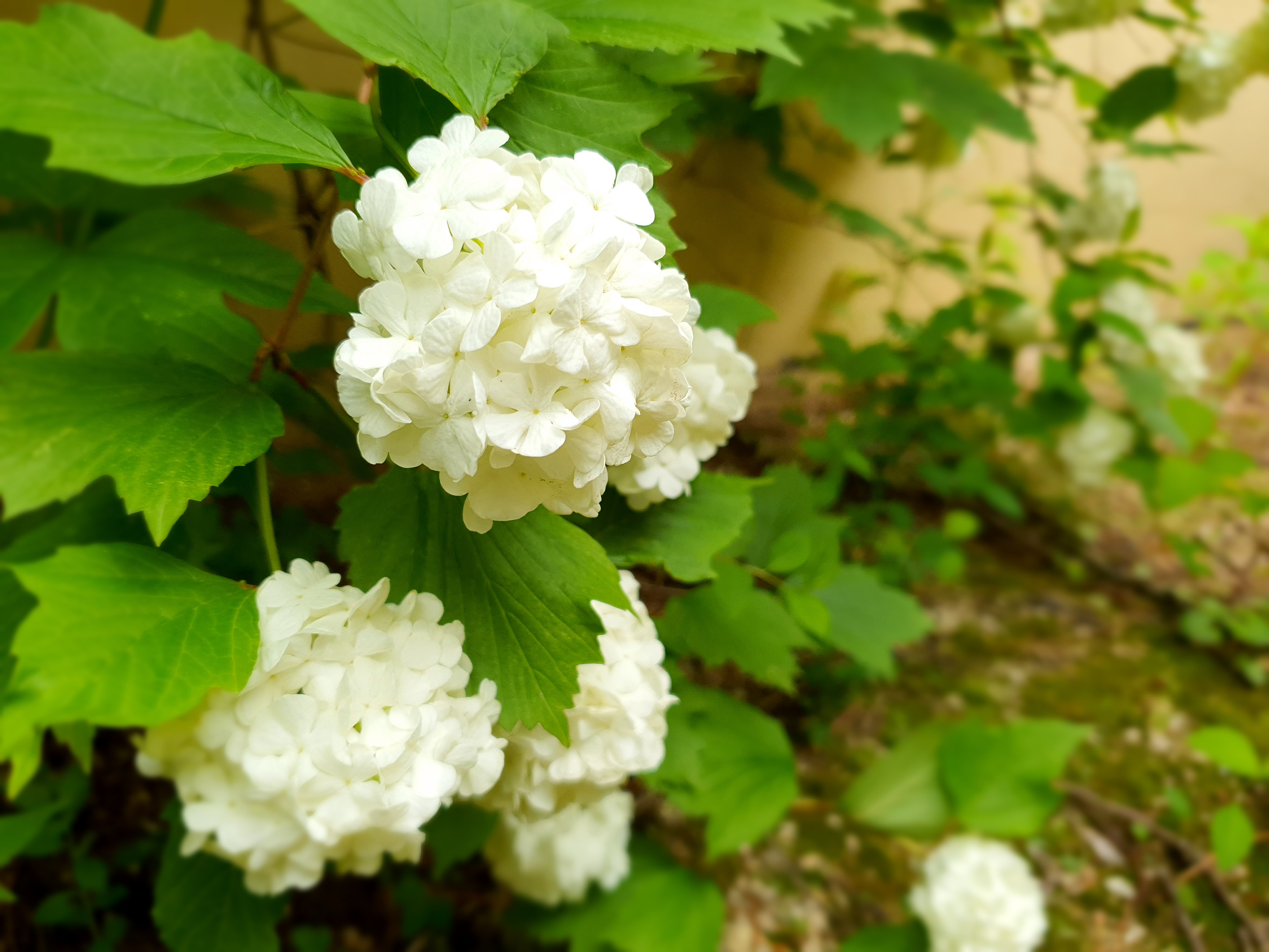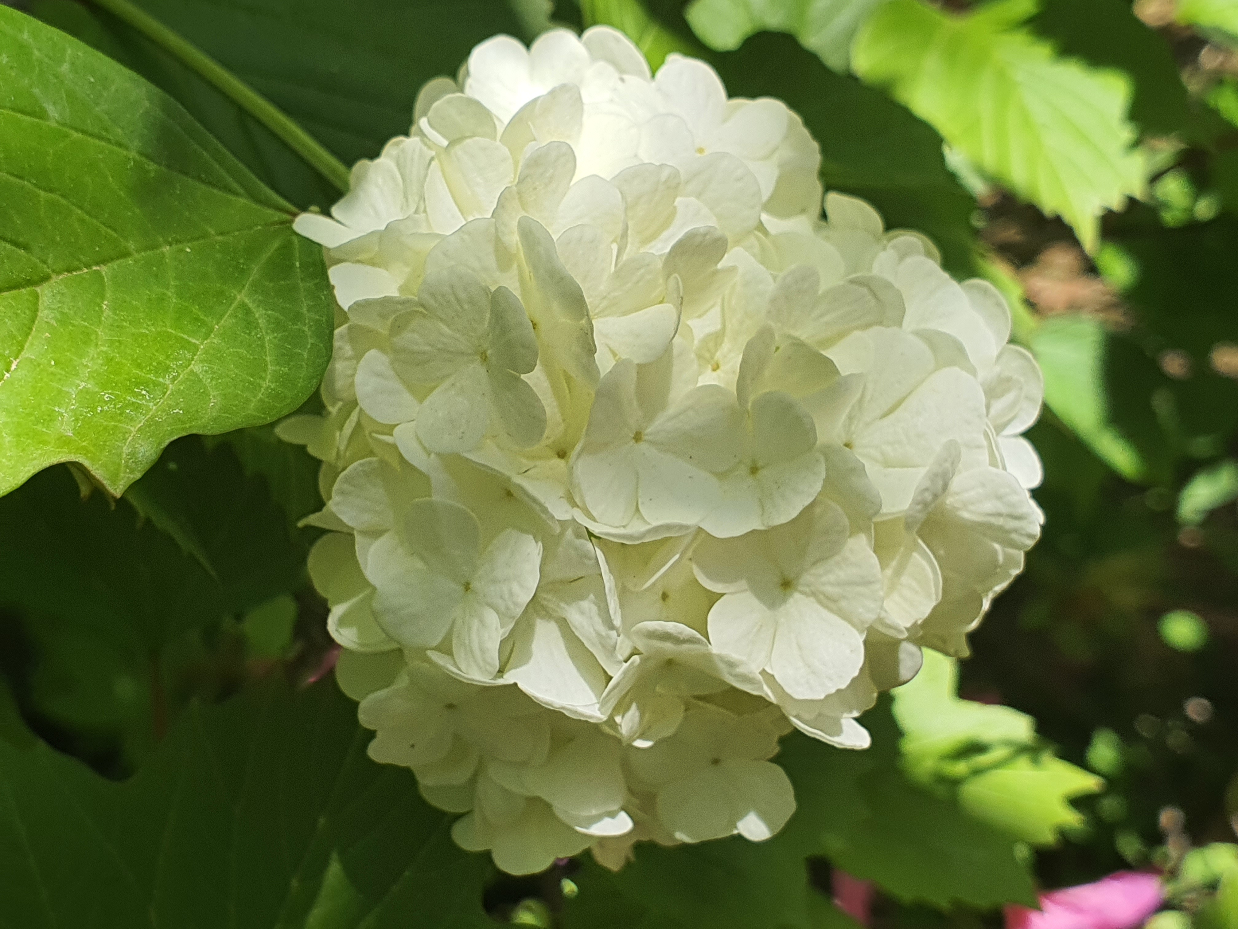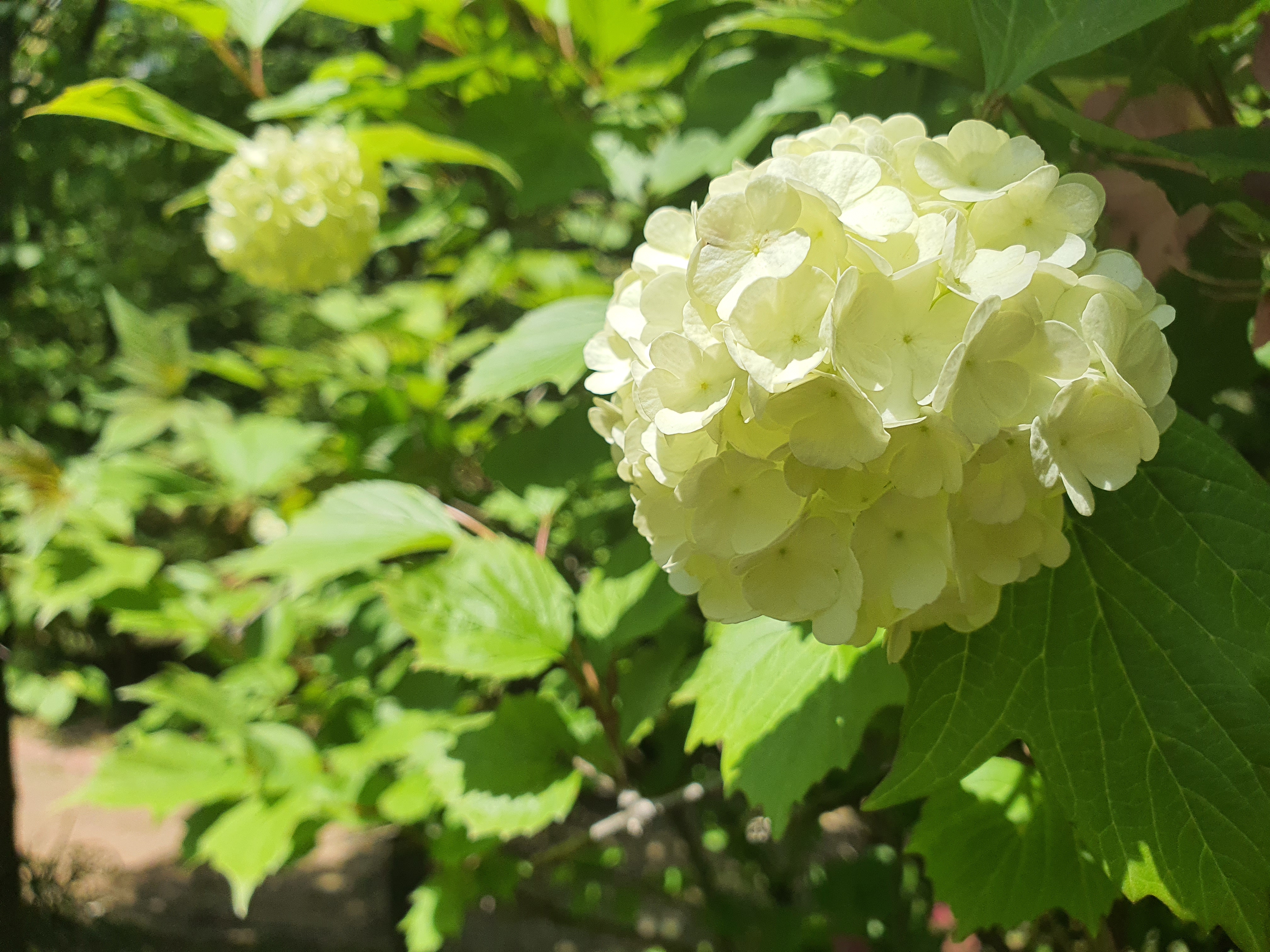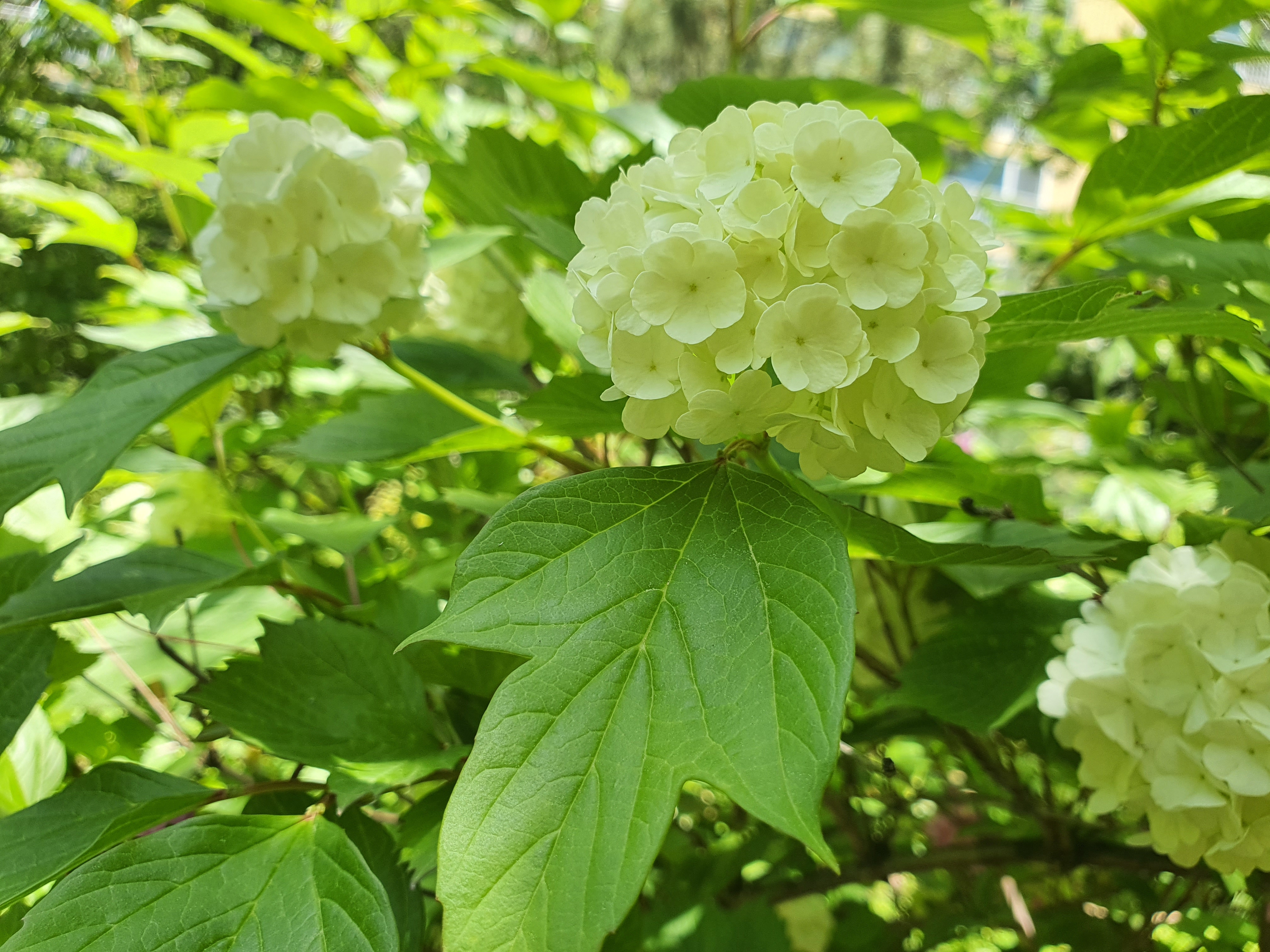 불두화는 잎은 수국과 생김새가 많이 달라요.