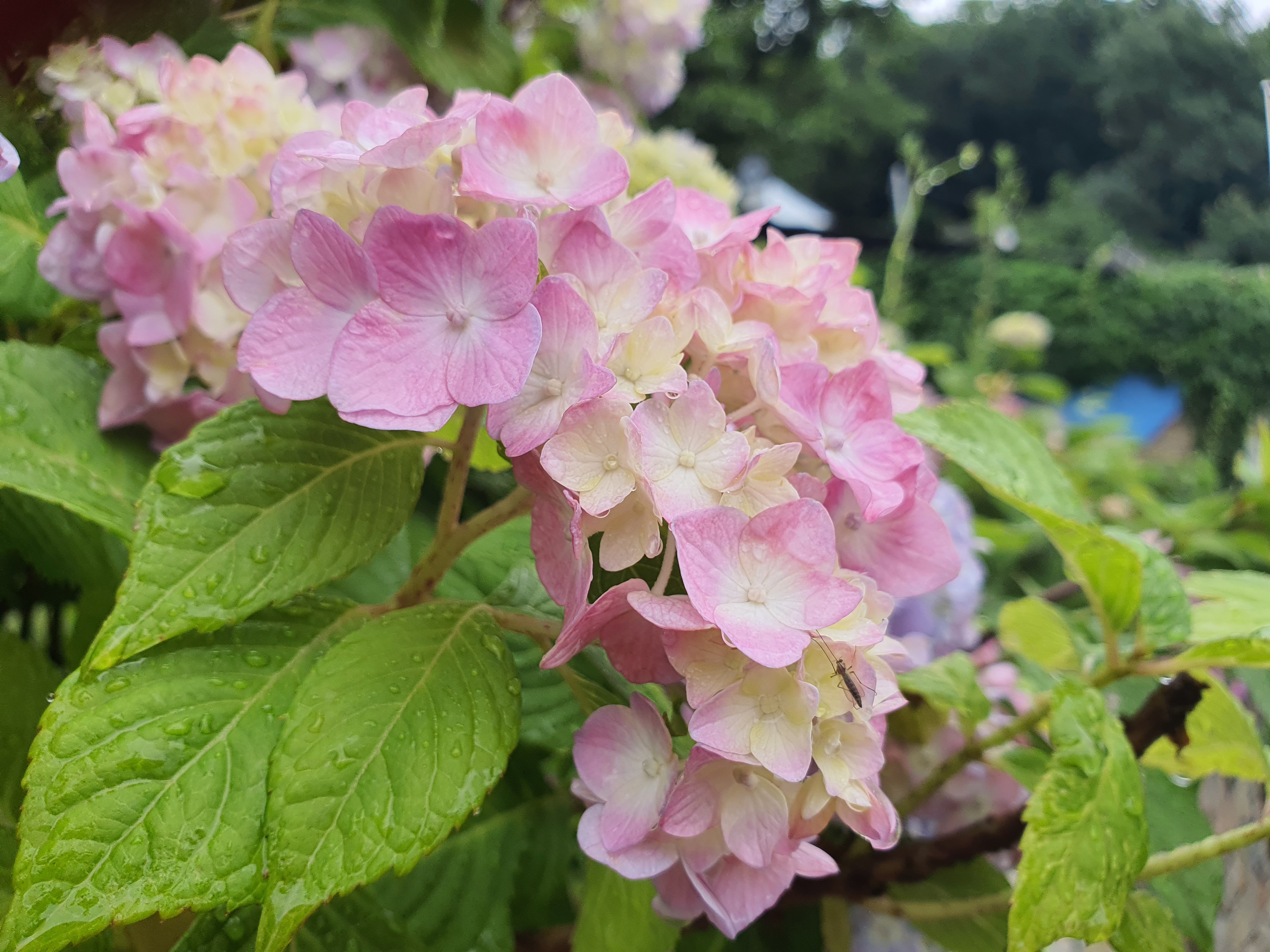 수국은 첨엔 연한 녹색을 띤 아이보리빛인데